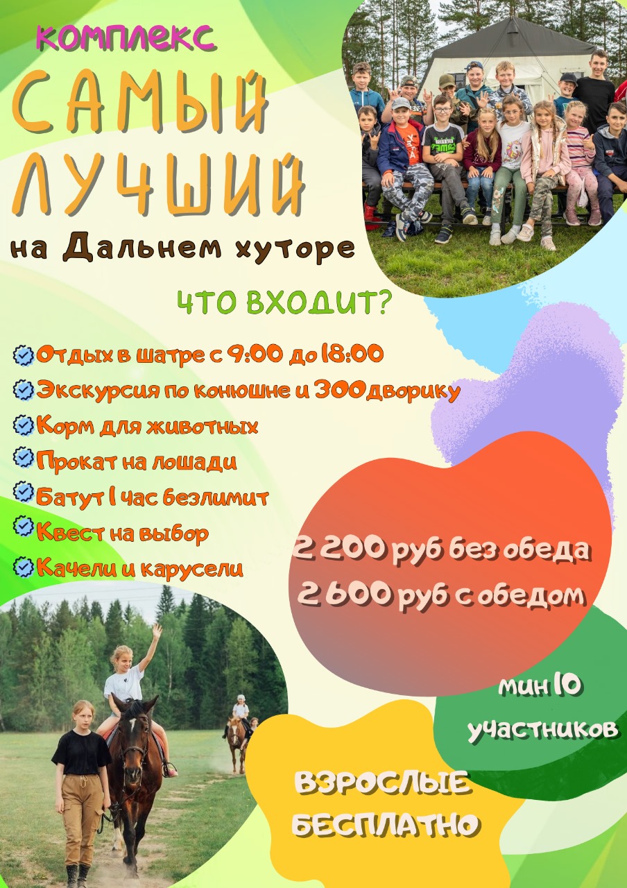 Экскурсия по конюшне и птичнику ( 1 билет на ребенка ).