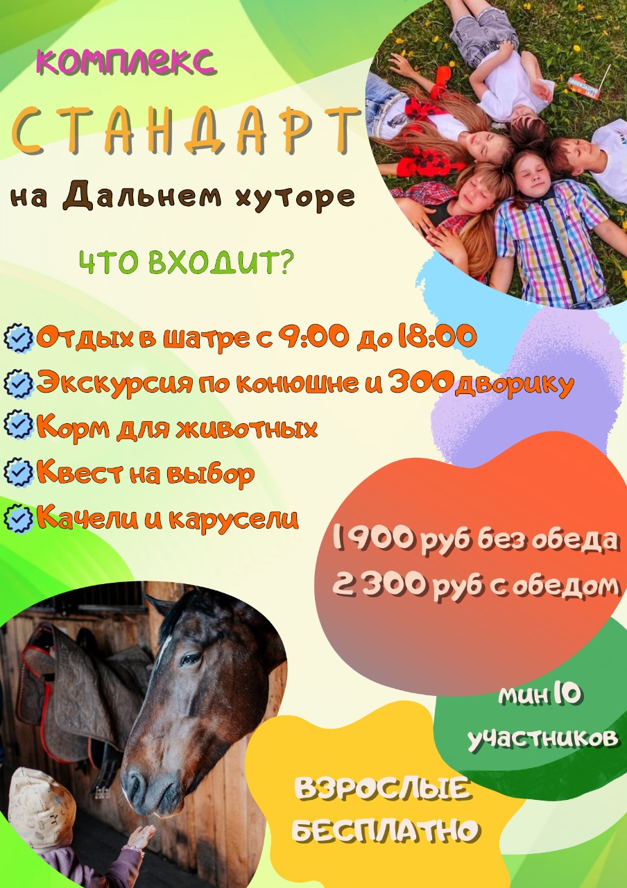 Экскурсия по конюшне и птичнику ( 1 билет на ребенка ).