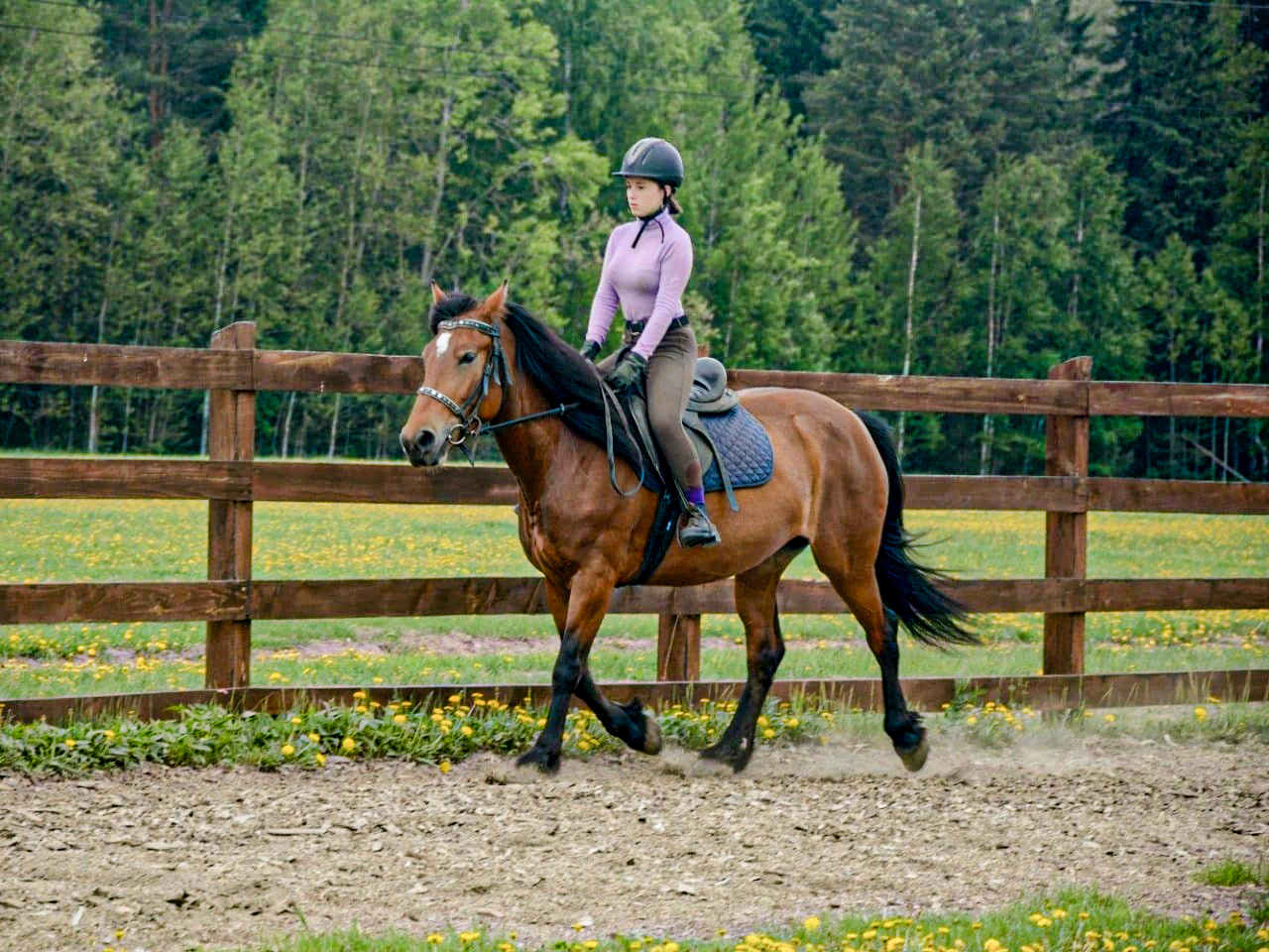 Научиться уверенно держаться в седле. Обучение проходит в леваде (специальный загон под открытым небом) под руководством опытного инструктора. Катание проходит на спокойных и ухоженных лошадках.
